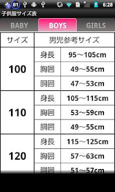 子供服サイズ表 Androidアプリ Applion